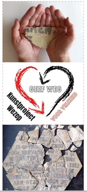 Tijdens het kunstproject "Geven in Vrijheid" verzamel ik verhalen en verbeeld deze die te maken hebben met geven in vrijheid ten tijde van de 2e Wereldoorlog met betrekking tot de hulp voor de Rotterdamse burgers. Daarnaast vraag ik inwoners van nu het verhaal over geven in vrijheid aan vluchtelingen in Wezep in dit kunstwerk te vertellen. Samen vormen deze verhalen en de gevende handen een kunstwerk in de Brinkhof Wezep.